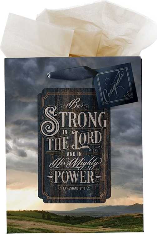 Celebrate your son or nephew’s graduation with a gift packed in the Strong in the LORD New Dawn Medium Gift Bag – large enough to hold your thoughtful present and convey a message of strength and hope, ideal for his new chapter in life.