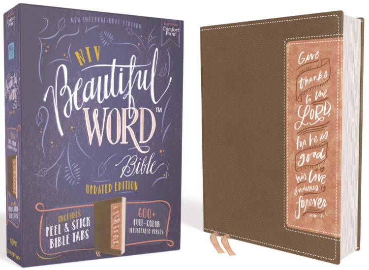 Be drawn into God’s Word through a fresh, creative expression of the beautiful words of God.Now refreshed with 100 additional illustrations, a highly readable typeface, plus newly added peel and stick Bible book tabs, the NIV Beautiful Worda Bible, Updated Edition offers a one-of-a-kind visual treatment of Scripture for a more beautiful quiet time. Find even more beauty in the Word of God as you discover wisdom to sustain you in every season. Be drawn into the splendor of God’s Word with colorful, illustrated verse art and uplifting imagery that complements Scripture. As you reflect, fill the wide margins with your thoughts, journals, and artwork. Features include: Single-column text of the accurate, readable, and clear New International Version (NIV)Peel and stick Bible book tabs 600 full-color illustrated versesWide margins and high-quality paper for notes, journal entries or artworkRibbon markerIndex of illustrated Scripture passagesCover lettering by Lindsay Letters Exclusive Zondervan NIV Comfort Printatypeface9.9-point print size