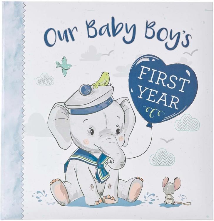 Our Baby Boy’s First Year Memory Book captures the precious memories of baby’s first year. It offers space to record memorable moments and milestones like his first steps and his first tooth, scrapbooking pages for photographs, and a special keepsake pocket for baby’s hospital bracelet or a lock of hair from his first haircut.