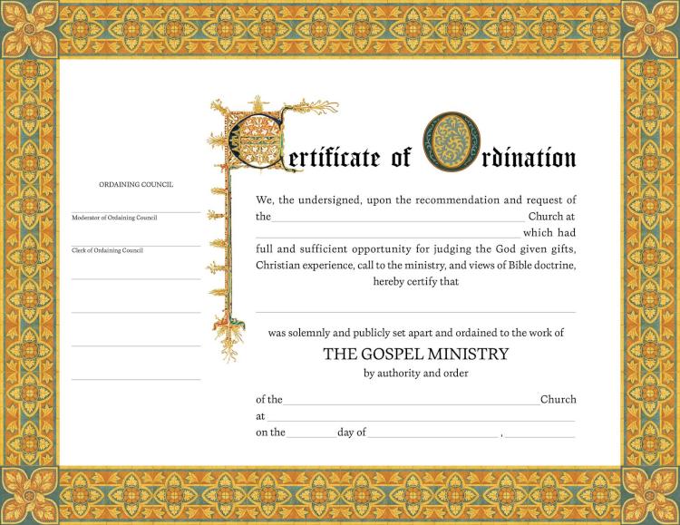 Appropriate for male or female. With space for ordaining council signatures