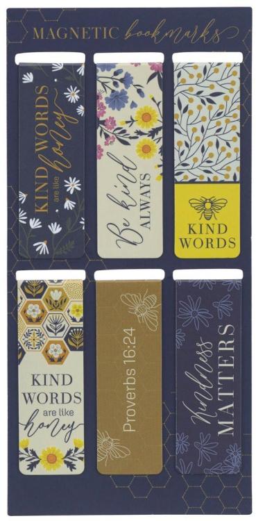 The 6 magnetic bookmarks in the Kind Words are Like Honey Magnetic Bookmark Set will add a touch of inspiration to your reading routine. Its lively navy and yellow design will brighten your page and inspire kindness.