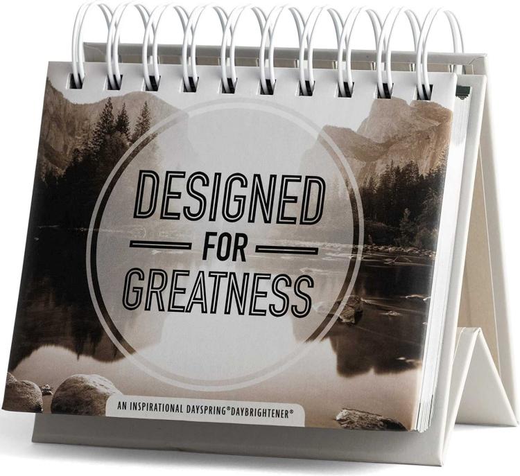 An excellent gift for Dads for Father’s Day, with affirming Scripture and devotions for men, this Designed for Greatness Perpetual Calendar features a masculine black and white landscape design that’s ideal for celebrating and encouraging your male loved ones or friends in your life on any occasion.