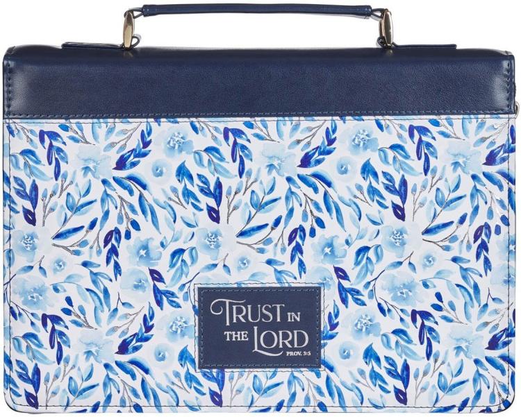 Fashion Vegan Leather Bible Cover for Women: Trust in The Lord, Blue, Large