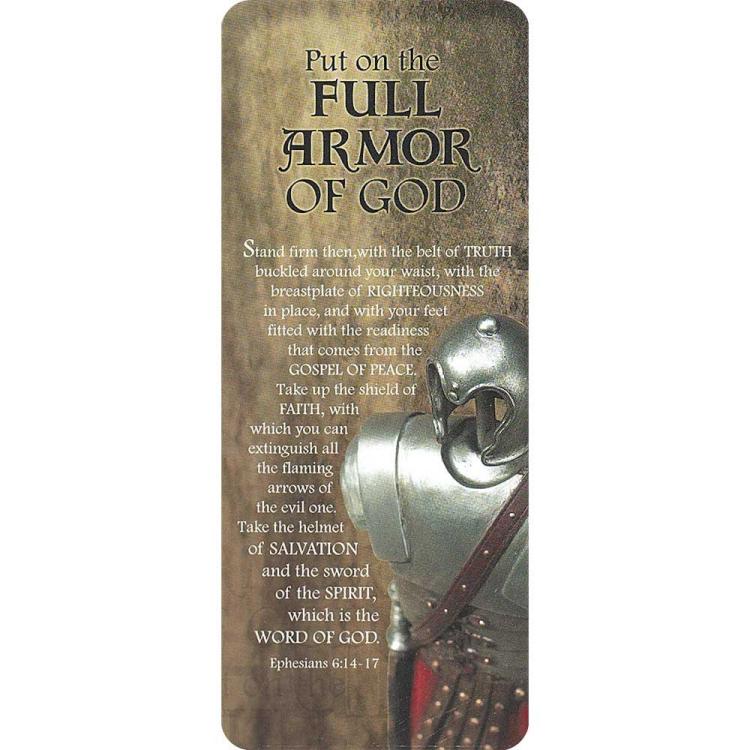 God’s word provides us with a powerful way to resist the devil’s schemes. Ephesians 6 describes it as putting on the full armor of God, elaborating on each part of the armor in verses 14 to 17. The passage is attractively printed on this bookmark along with an armor image that adds a dynamic visualization to the words. Of sturdy laminated card stock, the bookmark measures about 2 5/8″” x 6 3/8″”. Sold in packs of 12; great for groups!