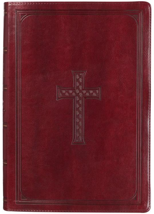 The Burgundy Faux Leather Super Giant Print King James Version Bible with Thumb Index with its subtle St. John’s cross design and easy-to-read text is bound to become your favorite chair or bedside companion.