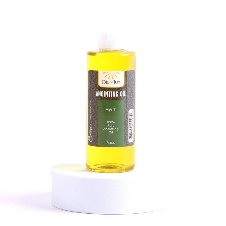 100% pure, Myrrh scented olive oil, in a 4 oz bottle.