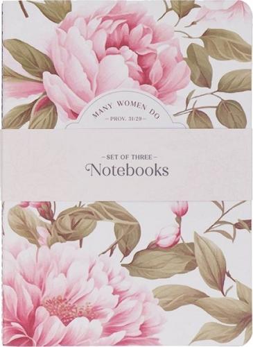 The Noble Things Pink Floral Notebook Set is part of the Noble Things Pink Peony Collection. This collection celebrates the beautiful work God accomplishes in the lives of women who trust Him. The collection includes a scented candle in a glass jar, a three-piece notebook set, a stainless steel travel tumbler with a reusable straw, a magnet set, a ceramic coffee mg, a spiral journal, a faux leather journal with a pen holder, and a gift bag.