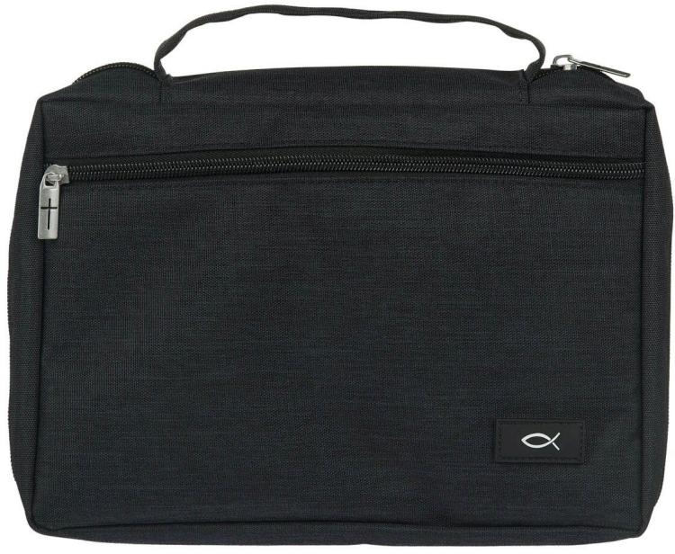Polyester Bible Cover for Men & Women w/ Jesus Fish Patch, Secure Zipper Pocket,