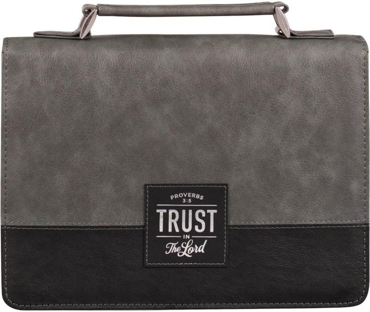 Let the message of the Trust in the LORD Gray and Black Faux Leather Bible Cover remind you to rely on God’s love~ power~ and wisdom in every single circumstance. This reminder on the Bible case that will protect your Bible from wear and tear will set the tone for your study every time you open it.”