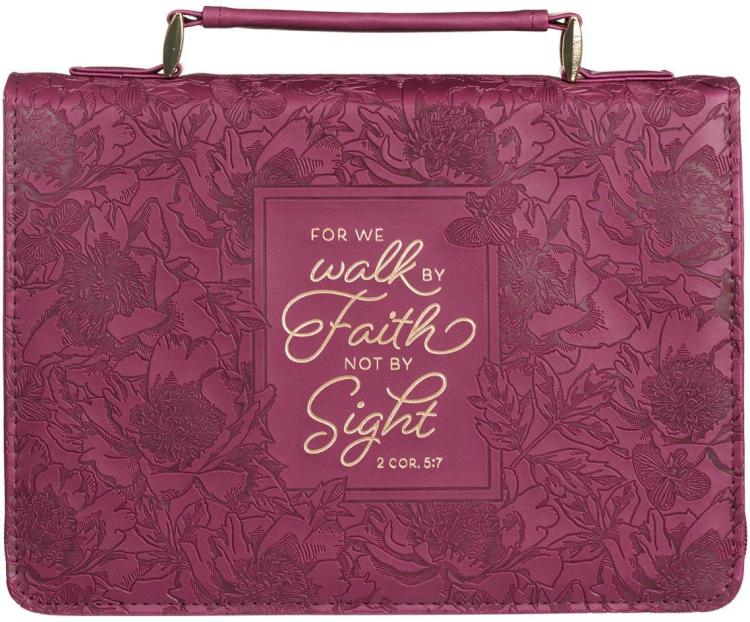 The Walk by Faith Ruby Red Faux Leather Fashion Bible Cover is your cue to take on life with the confidence that comes from knowing you serve an Almighty God~ and carrying your Bible in a sturdy Bible case will remind you of this honor every time you unzip it to read from God’s Word.