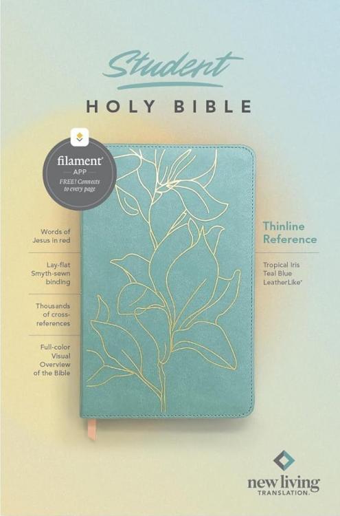Reignite Bible reading in your teen or student.Ready for a Bible that fits your on-the-go lifestyle? The NLT Student Thinline Reference Bible, Filament-Enabled Edition is your ultimate companion for life’s adventures. Packed with readable text, a sleek layout, and cross-references all in a slim, easy-to-carry size perfect for school, church, youth group, or wherever you roam. But hold on, there’s more! Brace yourself for a bold new design and the trusted, easy-to-read New Living Translation (NLT) the language you speak.Key features of this youth Bible include:Words of Jesus in red, making His teachings stand out.Thousands of cross-references for deeper understanding.Quality lay-flat, Smyth-sewn binding for durability.The Tyndale Verse Finder for easy navigation.A Visual Overview of the Bible bringing scripture to life.Comfortable 8.75-point font for smooth reading.A presentation page to make this Bible uniquely yours.Level Up Your Bible Study with the Epic Filament Bible App It’s Free! Unlock a world of knowledge on every page with this app from uplifting devotionals and thrilling videos to interactive maps and inspiring worship music. Plus, jam out to an awesome library of worship music that’ll fire up your spirit! With the Free Filament Bible App you’ll be instantly connected to:25,000+ study notes for deeper understanding.350+ videos to bring scripture to life.40+ maps and infographics for visual context.400+ profiles and articles for enriching insights.1,500+ devotionals for daily inspiration.Library of worship music to uplift your soul.Audio Bible to immerse yourself in God’s Word.The Filament Bible app transforms this beautiful Bible into a powerful study and devotional experience, offering more to expand your mind and touch your heart than you can possibly hold in your hand. And there is no additional cost for the Filament Bible app. No additional purchase. No additional size or weight.Of course, you can use this Bible without the app, but when you want to go further grab your phone or tablet and open the Filament Bible app and begin your immersive exploration. It’s so easy to use.This beautiful book is the perfect choice to give as a gift or to grow your faith and enhance your own experience of Scripture.