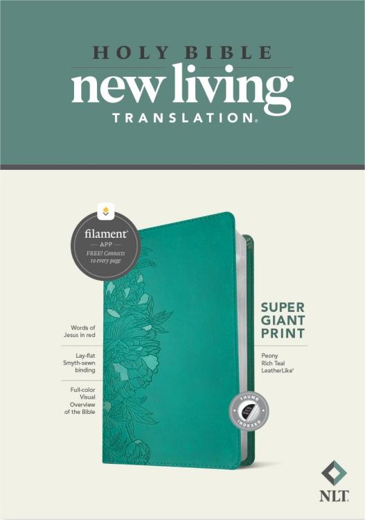 An exciting addition to Tyndale’s Bible collection, the NLT Super Giant Print Bible, Filament Enabled Edition offers easy-to-read 16-point type, the words of Jesus in red, a full-color visual overview of the Bible, and translation notes with minimal interruptions for a comfortable reading experience. And for the same low price as text-only Bibles, the NLT Super Giant Print Bible offers much more with the groundbreaking Filament Bible app. This app enables you to use your mobile phone or tablet to connect every page to a vast array of curated content, including thousands of study notes and hundreds of devotionals, plus interactive maps, informative videos, and inspiring worship music. The Filament Bible app turns this Bible into a powerful study and devotional experience, offering more to expand your mind and touch your heart than you can possibly hold in your hand.The New Living Translation is a clear and trusted English translation of the Bible. It conveys the precise meaning of the original languages in a flowing, effortless writing style that promotes comfortable and meaningful reading.