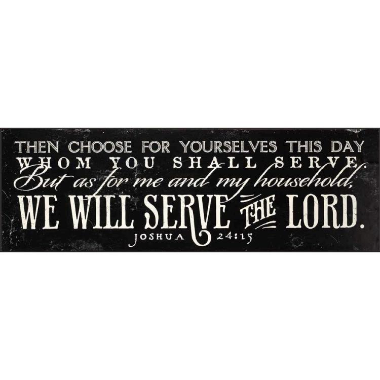 This elegant presentation of Joshua 24:15 has the popular vintage sign look. Makes a definitive statement in any home! Block style wood plaque is 24″” x 8″” x 3/4″” with black edges.